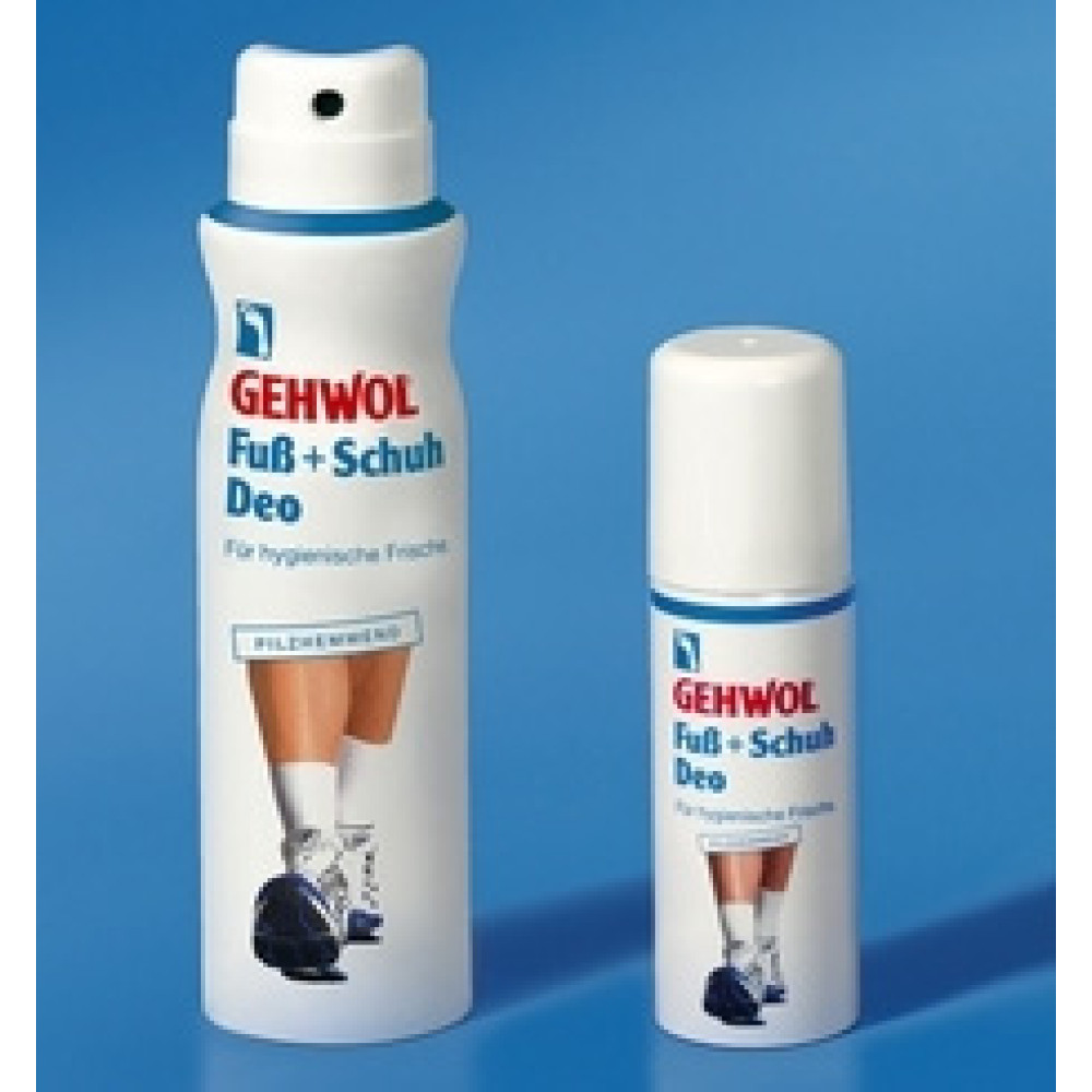 Дезодорант для ніг та взуття Gehwol розроблений найкращими німецькими косметологами спеціально для щоденного догляду за вашими ногами. Геволь рицинолеат цинку, що входить до складу дезодоранту, забезпечує надійний захист від неприємного запаху, як ногам, так і взуття, і дарує вам дивне відчуття свіжості та комфорту. Триклозан має протимікробну дію, запобігаючи появі різного роду грибкових інфекцій. З дезодорантом Gehwol ваші ноги знайдуть чудове відчуття свіжості, чистоти та комфорту і будуть надійно захищені від виникнення різних грибкових інфекцій під час відвідування басейну, сауни або бані.